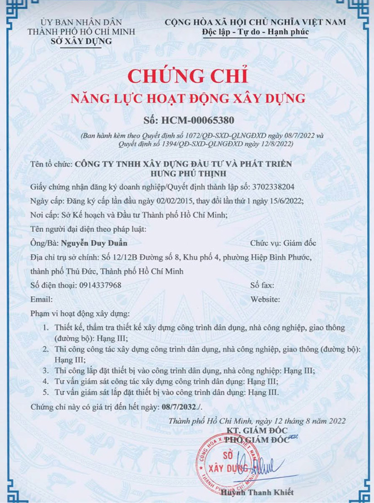Hưng Phú Thịnh phấn đấu trở thành một trong những công ty xây nhà trọn gói có chất lượng tốt nhất thị trường thành phố HCM và các tỉnh lân cận trong lĩnh vực xây dựng dân dụng và công nghiệp.